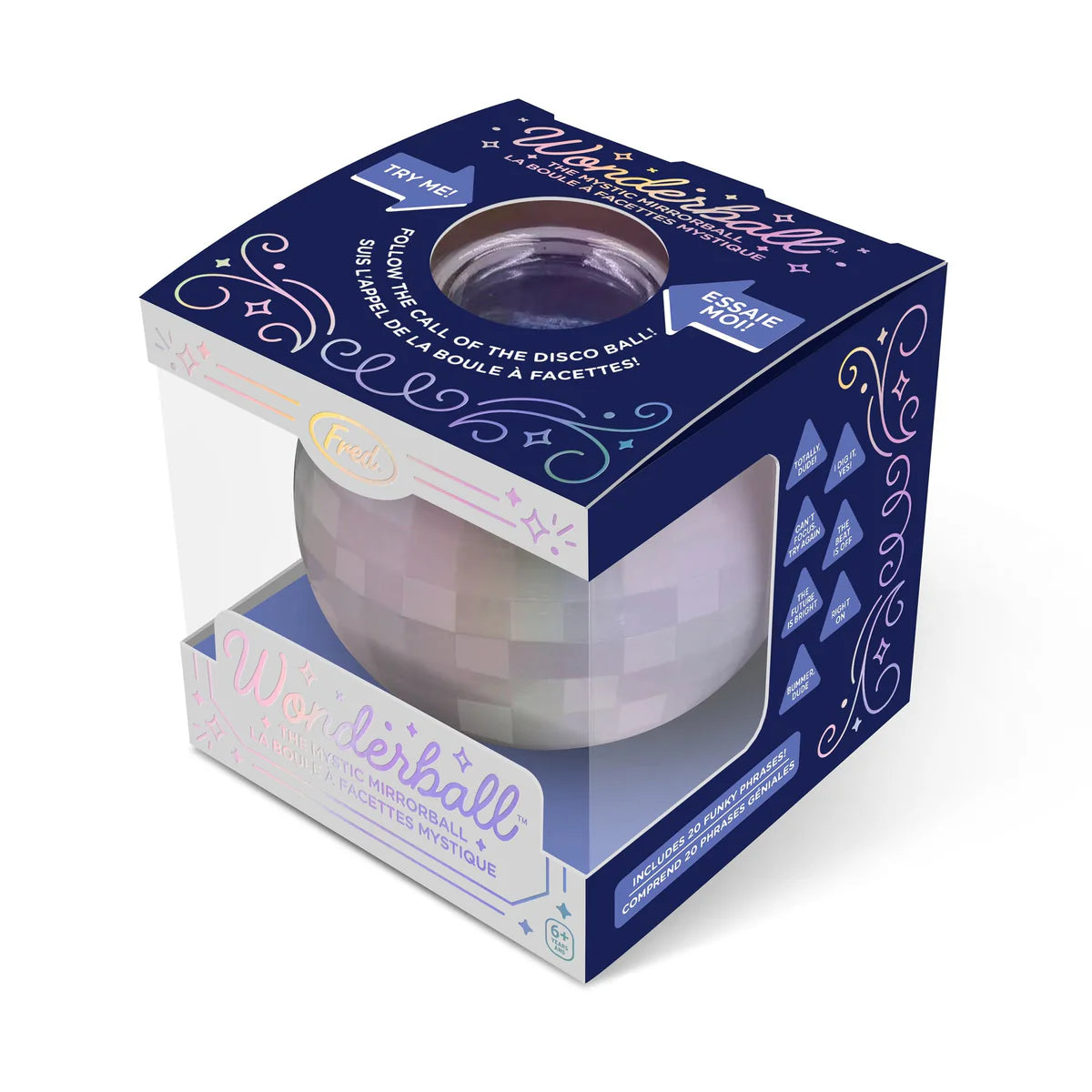 Don’t make a move without consulting Fred’s Wonderball, the mystical mirrorball! Simply give it a shimmy and shake, and watch as one of 20 funky fortunes appear. It’s your disco diviner for all of life’s twists and turns. Measures 3.9” in diameter and comes packed in a giftable window box with iridescent details.