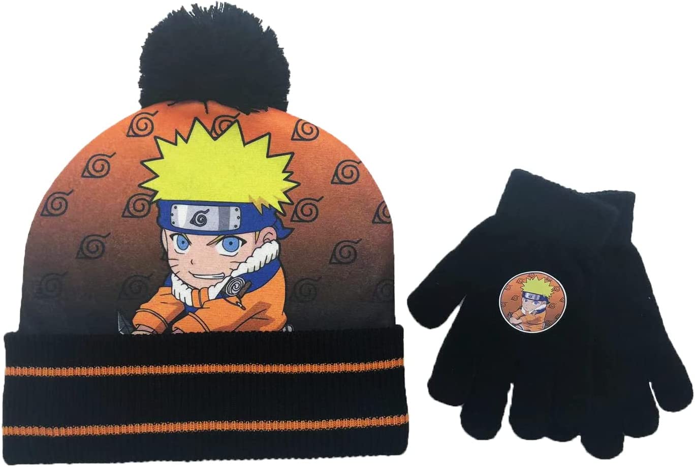 - Design: This beanie and gloves set is a must-have for fans featuring Naruto on a hidden leaf village symbol collage background.