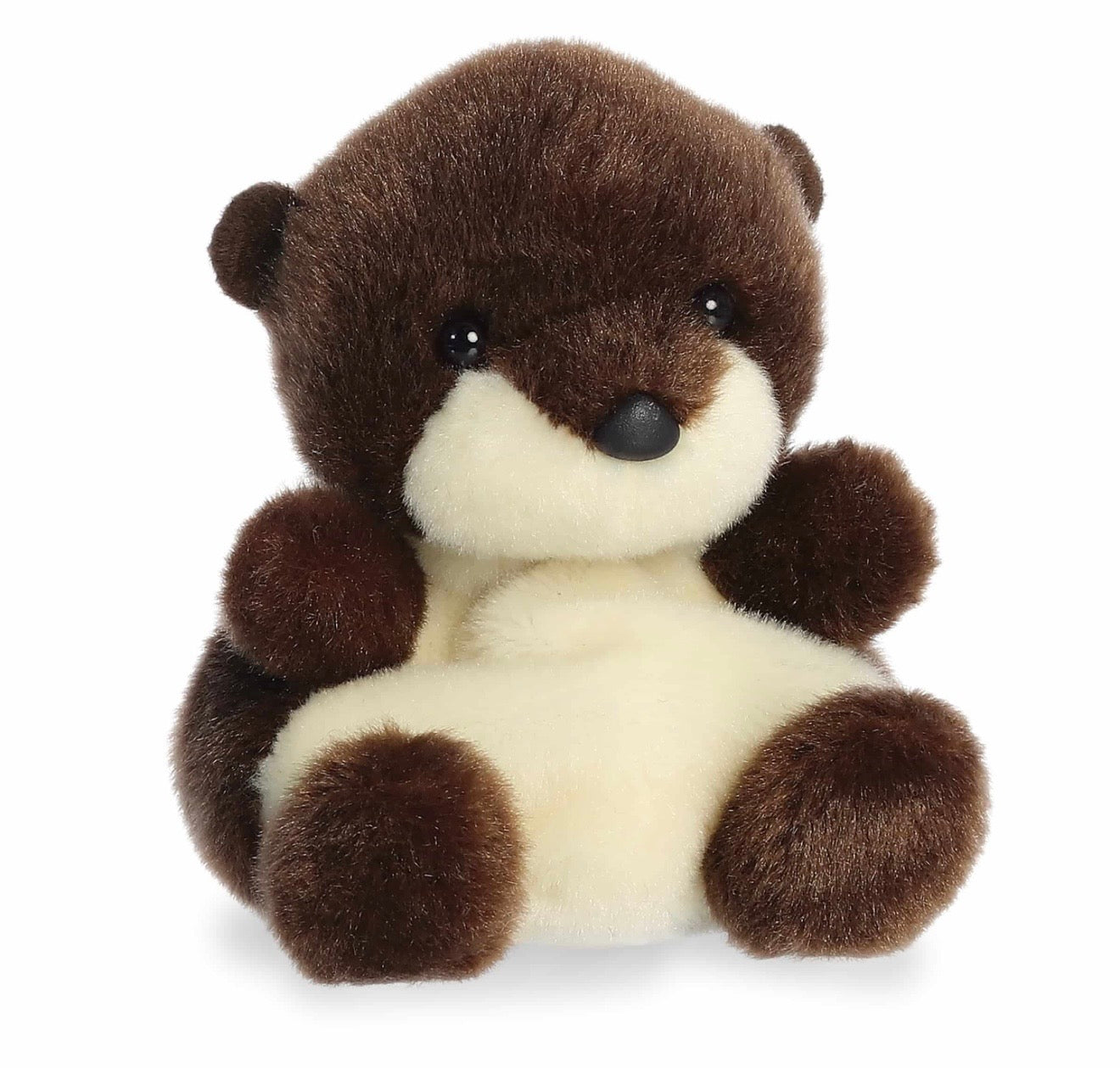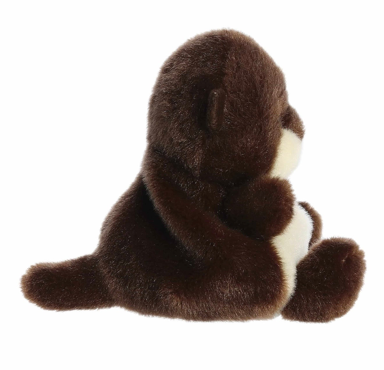 She is a plush river otter with a sleek brown coat and a cute plastic button nose. Her adorable eyes twinkle with mischief and mirth, perfectly capturing her lighthearted nature.