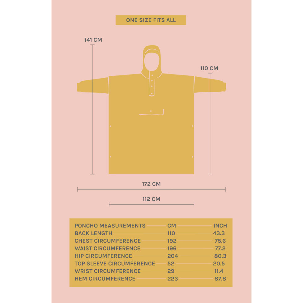 Our rain ponchos are cut to perfection with taped seams and a waterproof column of 10.000 mm. It's of high importance to us to only work with sustainable materials, like recycled polyester. Some choices in life are worth it.