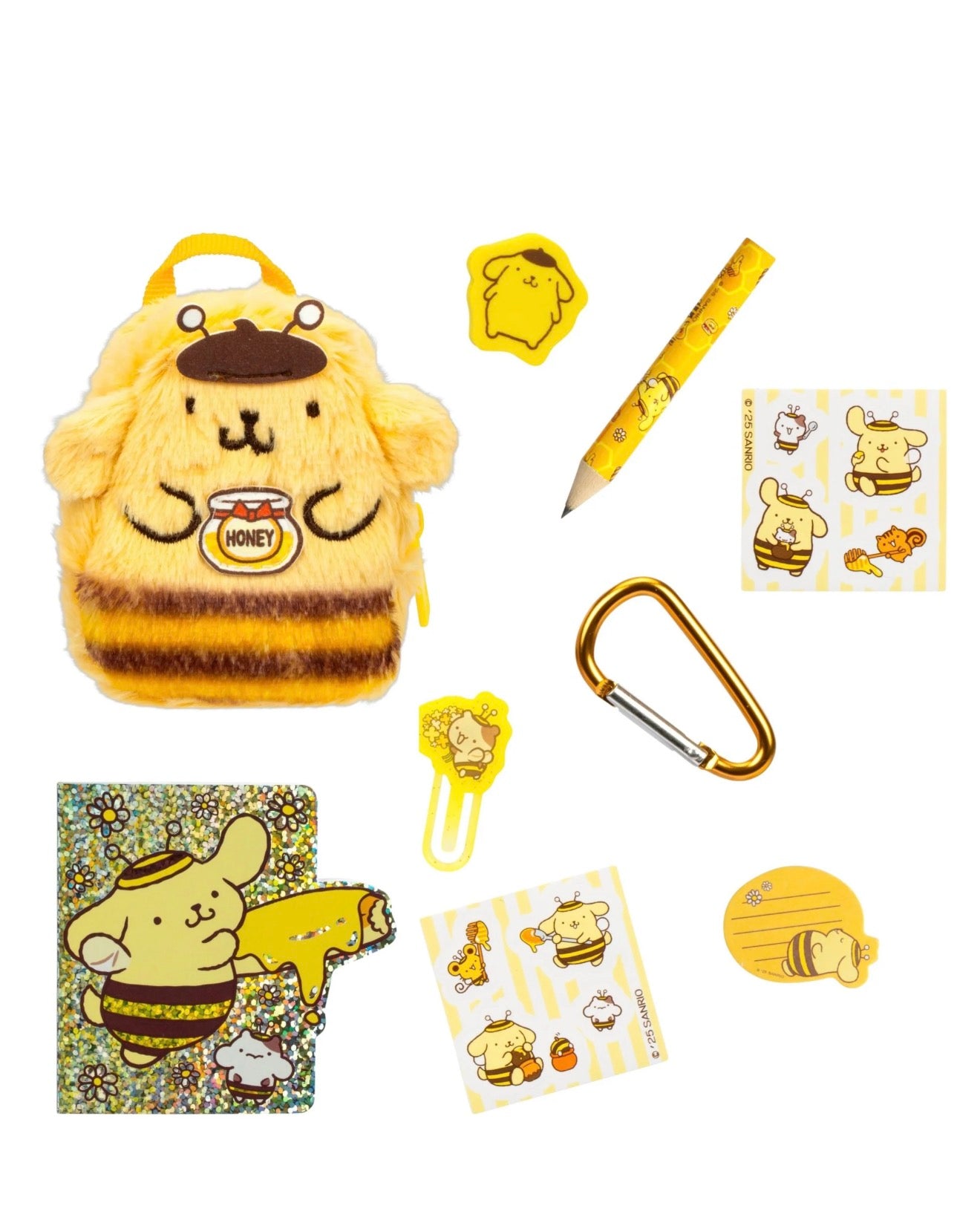 Hello Kitty® and Friends Real Littles Backpacks are back and now they are full of scented surprises! Four of your child's favorite Sanrio® characters can now be found on Real Littles Backpacks! These cute, colorful Sanrio® backpacks are filled with All-New mini collectible surprises that are scented with the most beautiful smells. Collect strawberry scented Hello Kitty®, cookie scented Kuromi, honey scented Pompompurin and floral scented My Melody in the form of adorable mini working backpacks! Each little backpack has been made with the coolest materials and finishes, with 6 of the cutest Sanrio® stationery scented surprises hiding inside! These tiny stationery surprises all really work! Kids will love finding tiny Pencils, Pens, Rulers, Notebooks, Stampers, Sticky Notes, Pencil Cases, Tape Dispensers, Erasers, Stickers and more! Each micro Backpack has straps and a loop to hang onto a school bag or jeans! It's fun collecting all the mini surprises and swapping and sharing them with friends! Hello Kitty® and Friends Real Littles are "Things You Love Made Micro"!