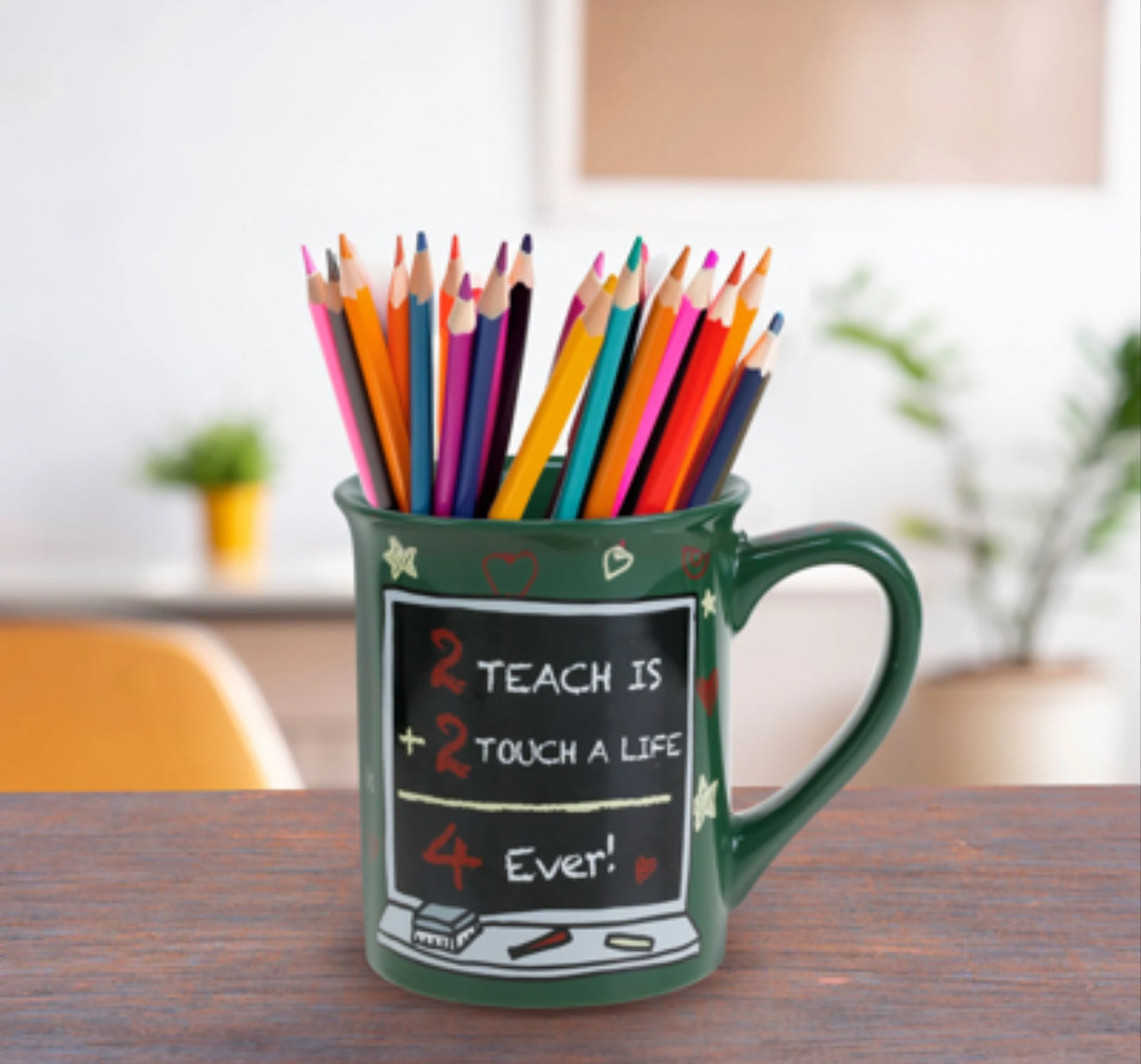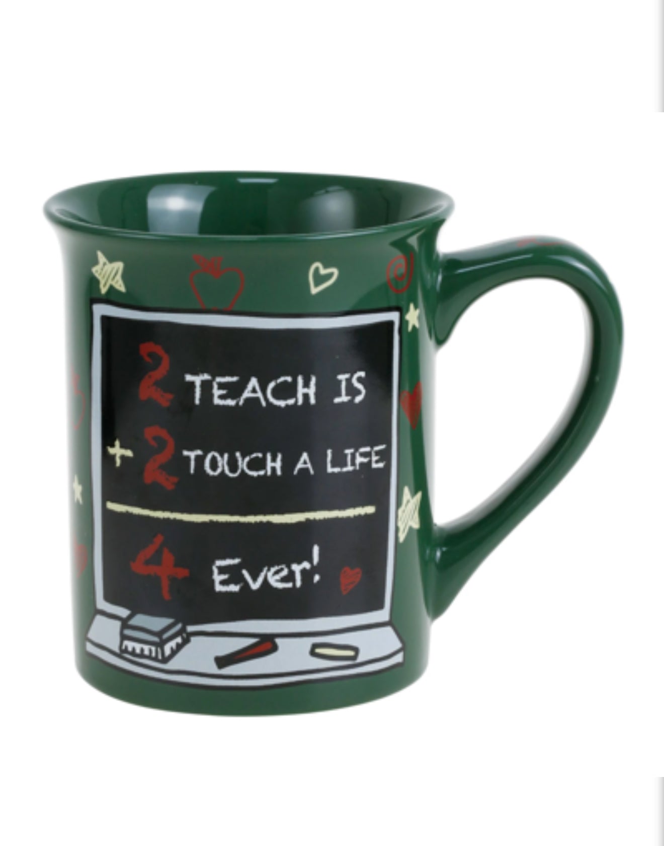 This cheerful green mug makes a loving gift for teachers. With a playful math equation on a drawn blackboard and a heartfelt message written in chalk, this Our Name is Mud mug celebrates the impact teachers make on our lives with charming doodles.